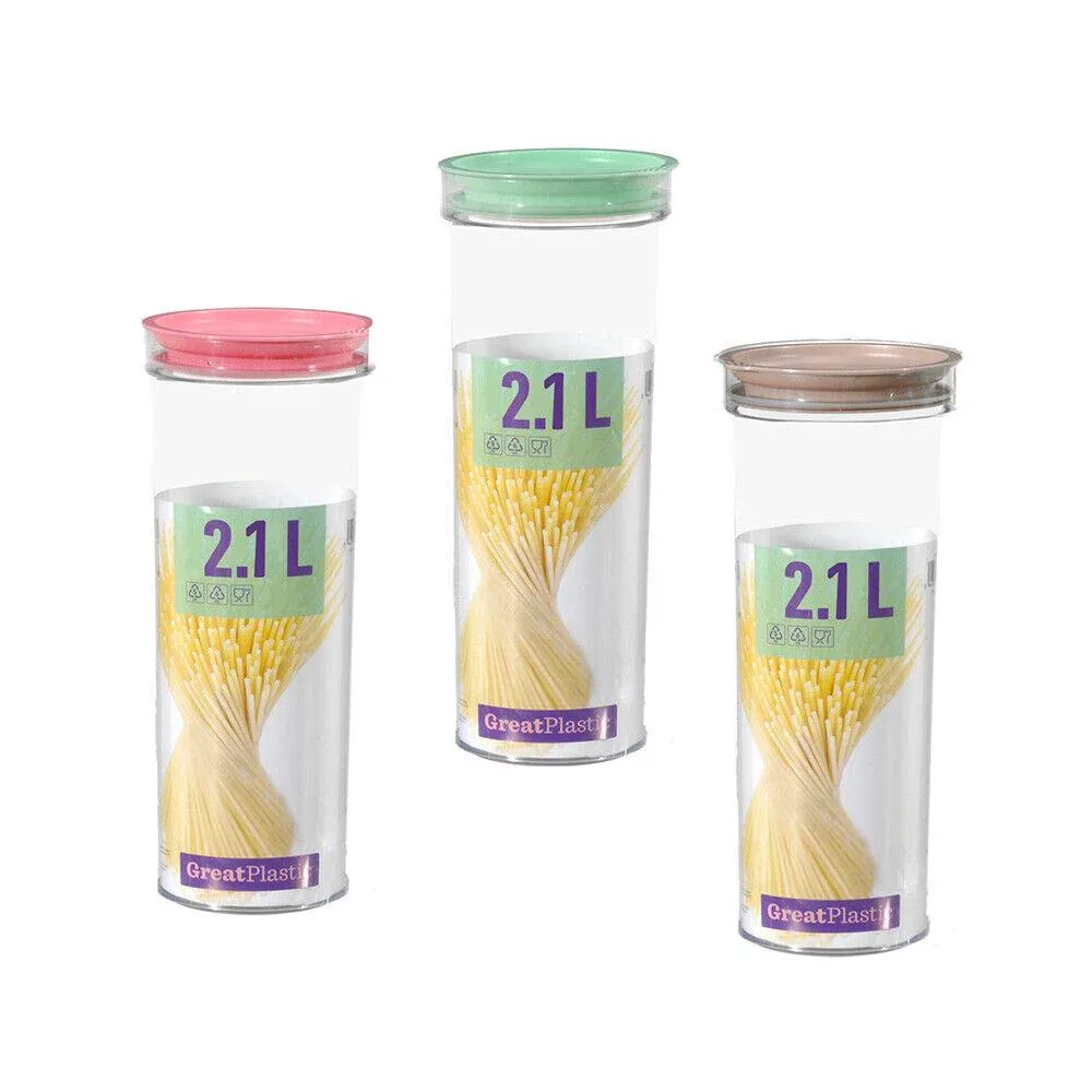 Bote Redondo PS con Junta 2.1L. de plástico para guardar spaguettis pasta