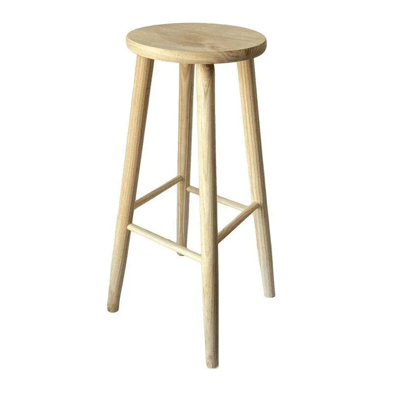 Taburete Redondo de Barra, Banqueta Redonda de Madera Natural 28 x 70cm