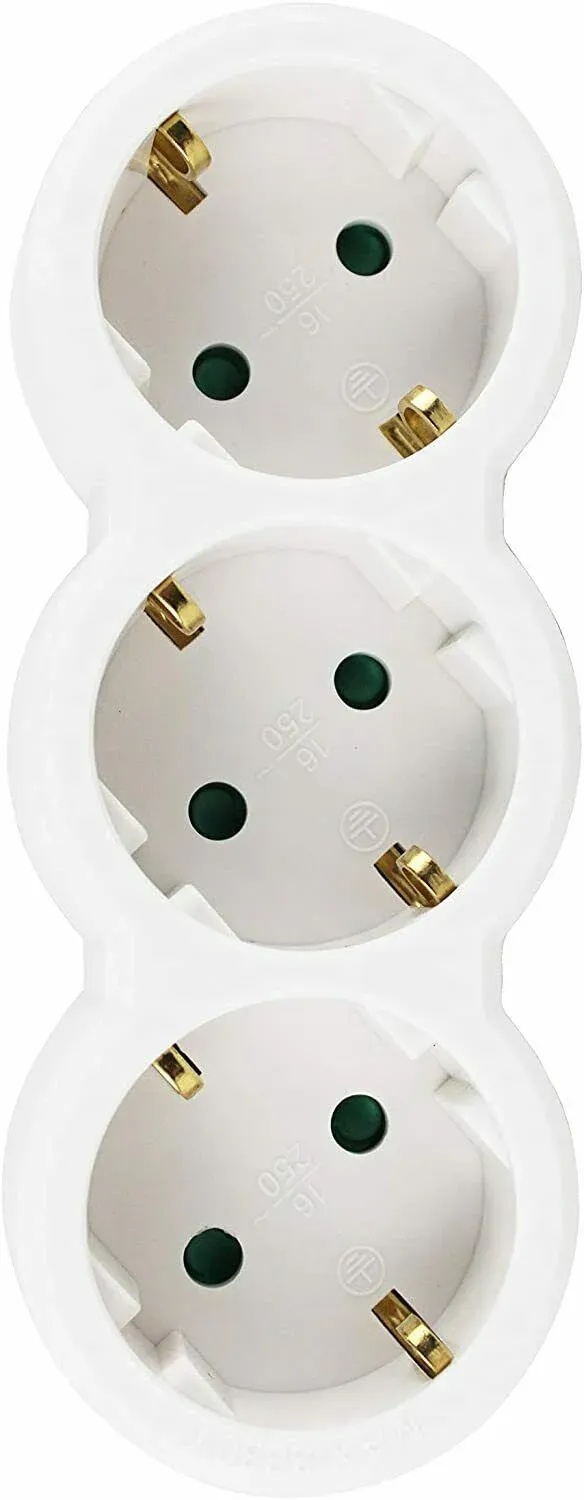 Adaptador plano con interruptor y tres enchufes schuko. 16A/250V~ MAx.3680W