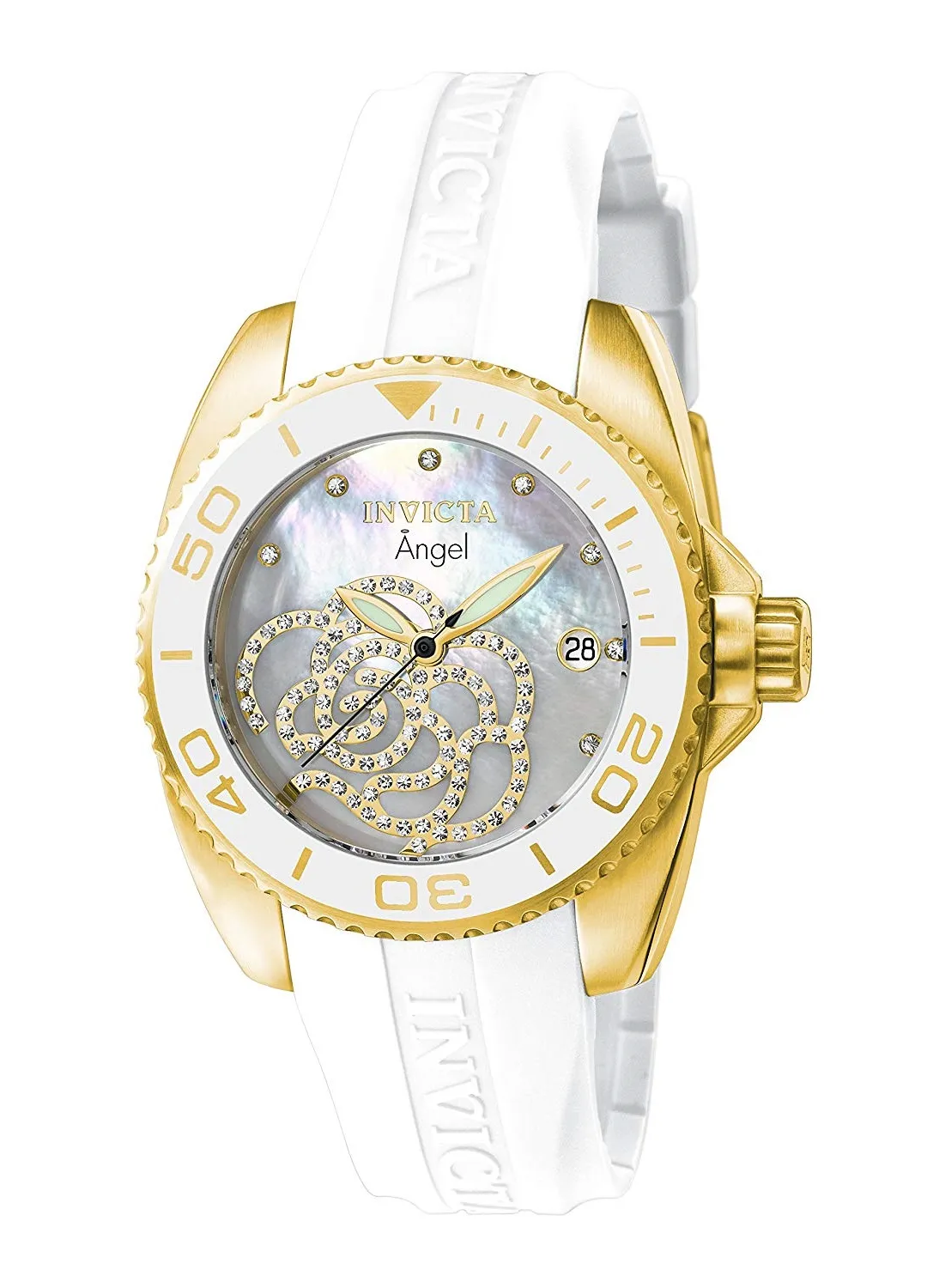 Reloj para Dama Invicta 0488 tono dorado con correa de poliuretano color blanco