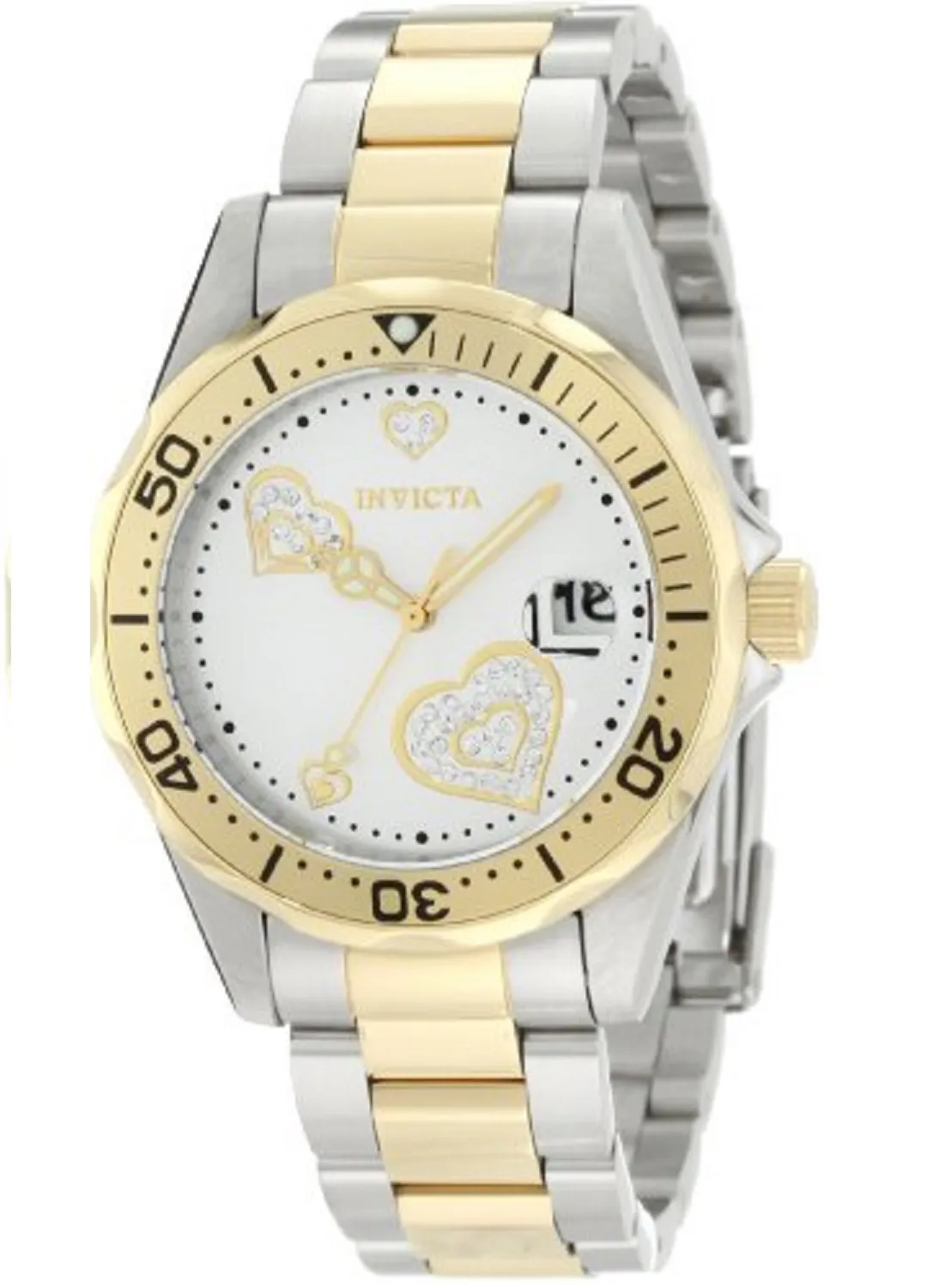 Reloj para Dama Invicta 1228 de acero inoxidable dos tonos esfera con corazones en plata