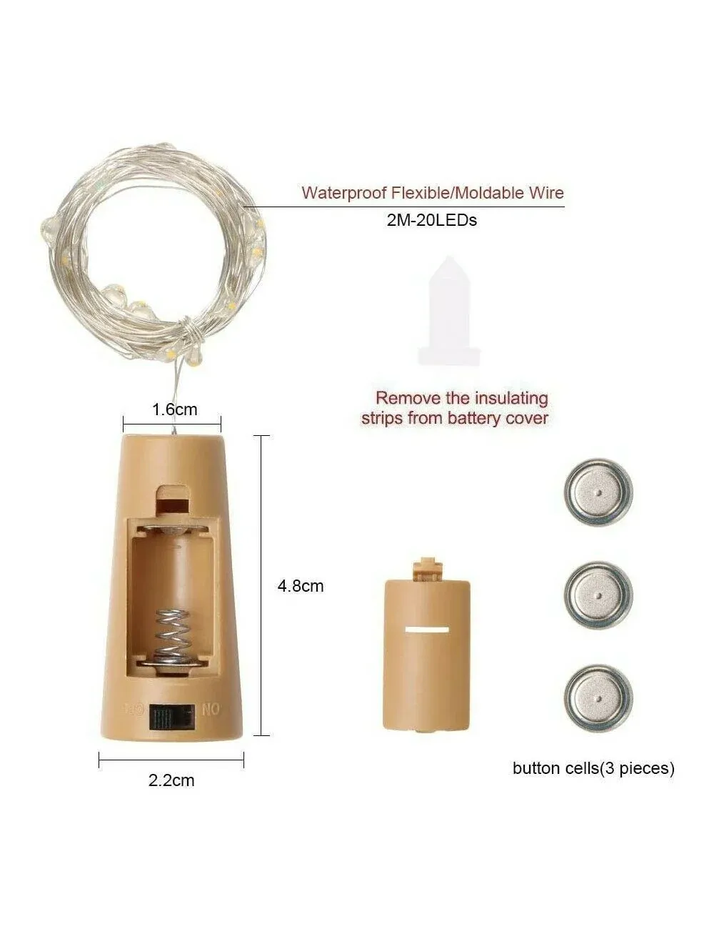 Cable de cobre blanco cálido Cadena de luces LED de hadas 1M 2M guirnalda de luz decorativa para botella de vidrio artesanal decoración de Navidad para el hogar