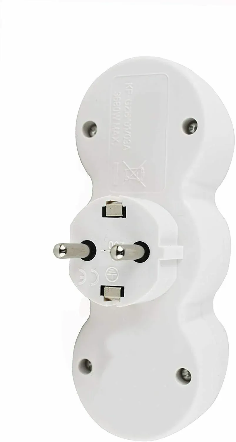 Conveniente: el tomacorriente con conexión a adaptador triple schuko es de tamaño compacto y liviano, lo que facilita su transporte. Los adaptadores de salida enchufables proporcionan una expansión conveniente de la capacidad de salida. Permite utilizar tres veces la cantidad de enchufes para hacer un uso eficiente de su espacio. El plástico resistente garantiza que sus cables y cables permanezcan enchufados. Excelente para la oficina o cualquier lugar donde necesite enchufes adicionales.