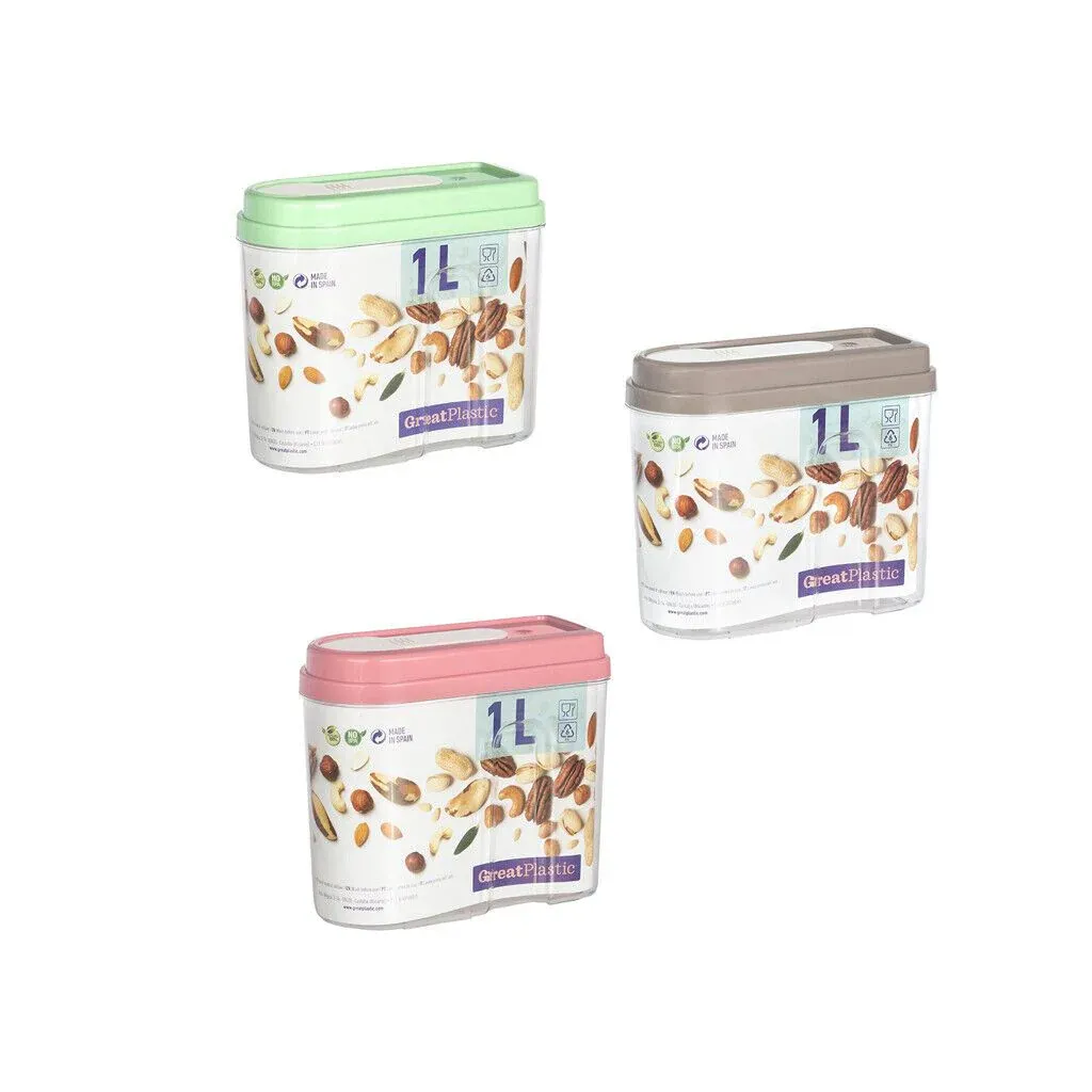 El Bote Cocina Ovalado PS cuenta con un diseño transparente que permite visualizar los alimentos y mantener tu cocina en orden. Cuenta con una pestaña deslizante en la tapa para mayor comodidad durante su uso al verter alimentos. Este bote de plástico tiene una capacidad de 0,5, 1, 1,6L. Combínalo con la decoración de tu cocina gracias a su gama de colores.