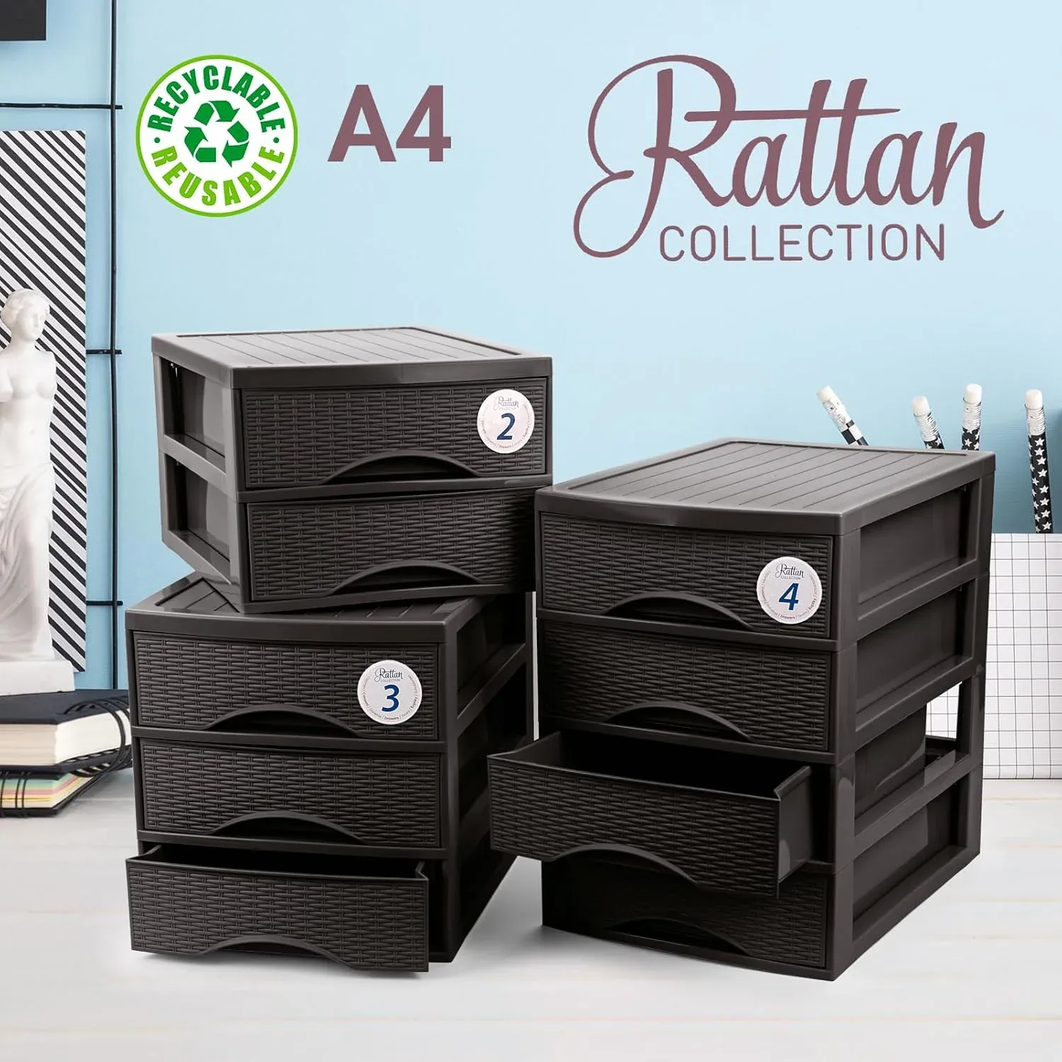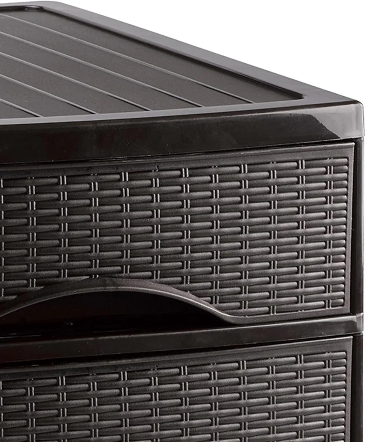 Cajonera de sobremesa para almacenamiento Plastic Forte de la Colección Rattan fabricada en plástico PP, duradero y resistente, libre de BPA. Es decorativa y ligera, ideal para mantener ordenado cualquier espacio dónde necesites maximizar el espacio. Dispone de varios cajones con los cuales podrás extraer completamente para tener los objetos que quieras almacenar en su interior a mano en todo momento.