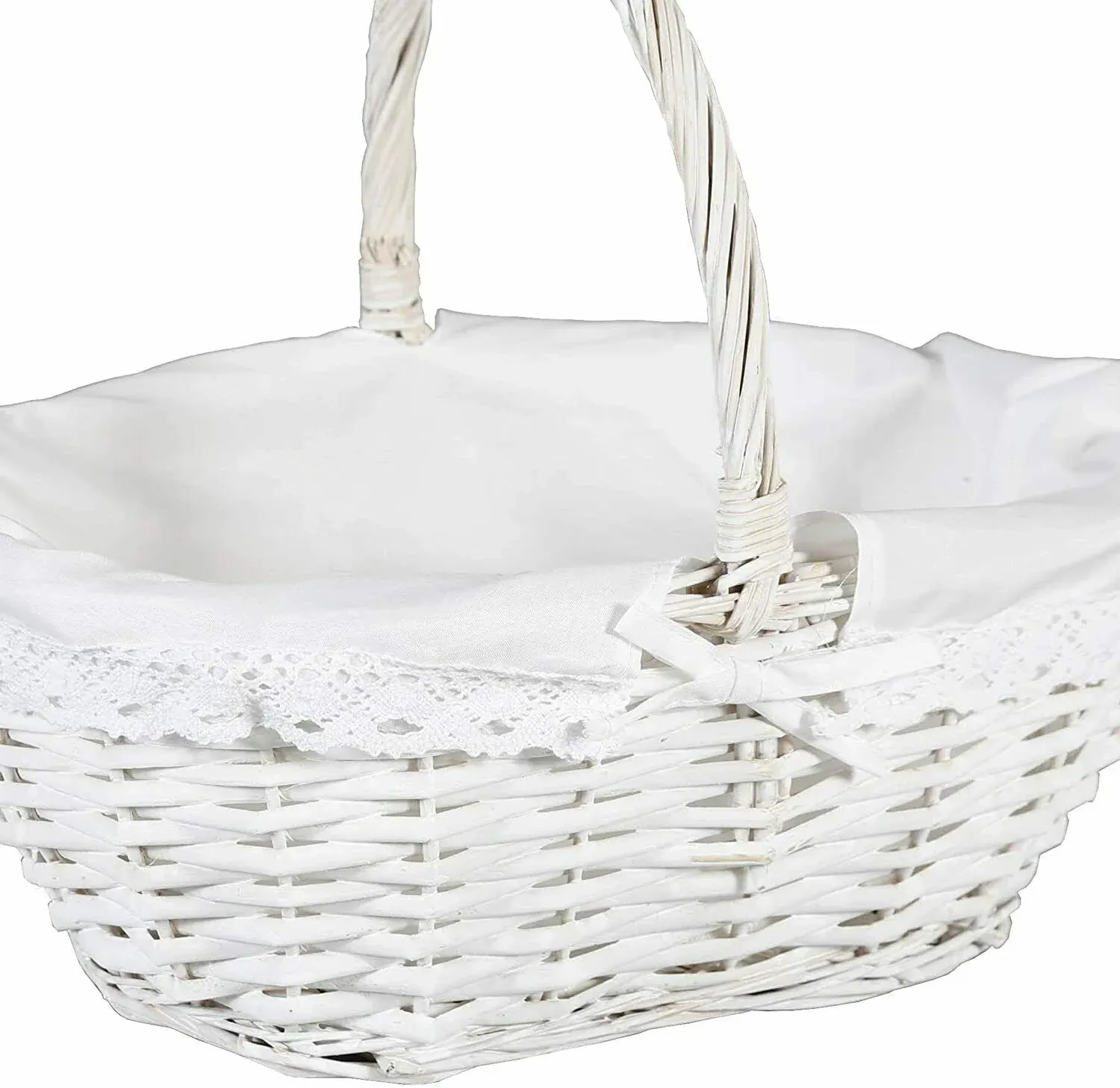- CESTA DE MIMBRE FORRADA CON TELA BLANCA El mimbre nunca pasa de moda y tanto es así que si observamos las tendencias actuales y pasadas siempre hay referencias a él. Esta cesta oval blanca podrá serte útil para muchas cosas: como por ejemplo, para repartir los regalos de una boda, llenarla de flores naturales y decorar tu salón, como base para hacer un regalo, un centro de mesa… ¿para que la utilizarías tú?