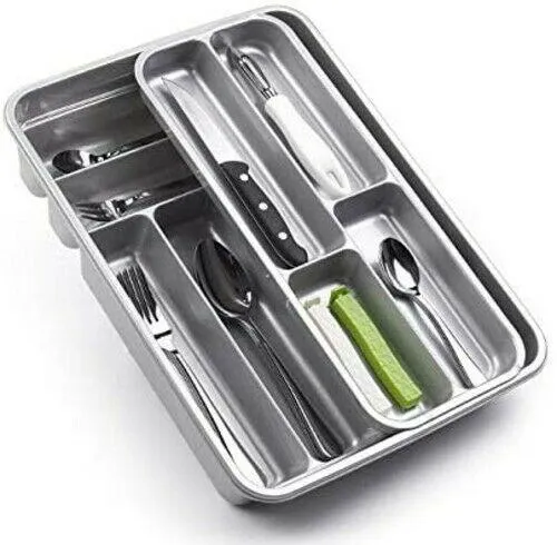- MEDIDAS PRÁCTICAS: estos cuberteros para cajones de cocina miden 36,2 cm de largo x 28,6 cm de ancho x 5,1 cm de alto y se pueden extender a 50,8 cm de ancho. Con pies antideslizantes para usarse fuera de cajones.
