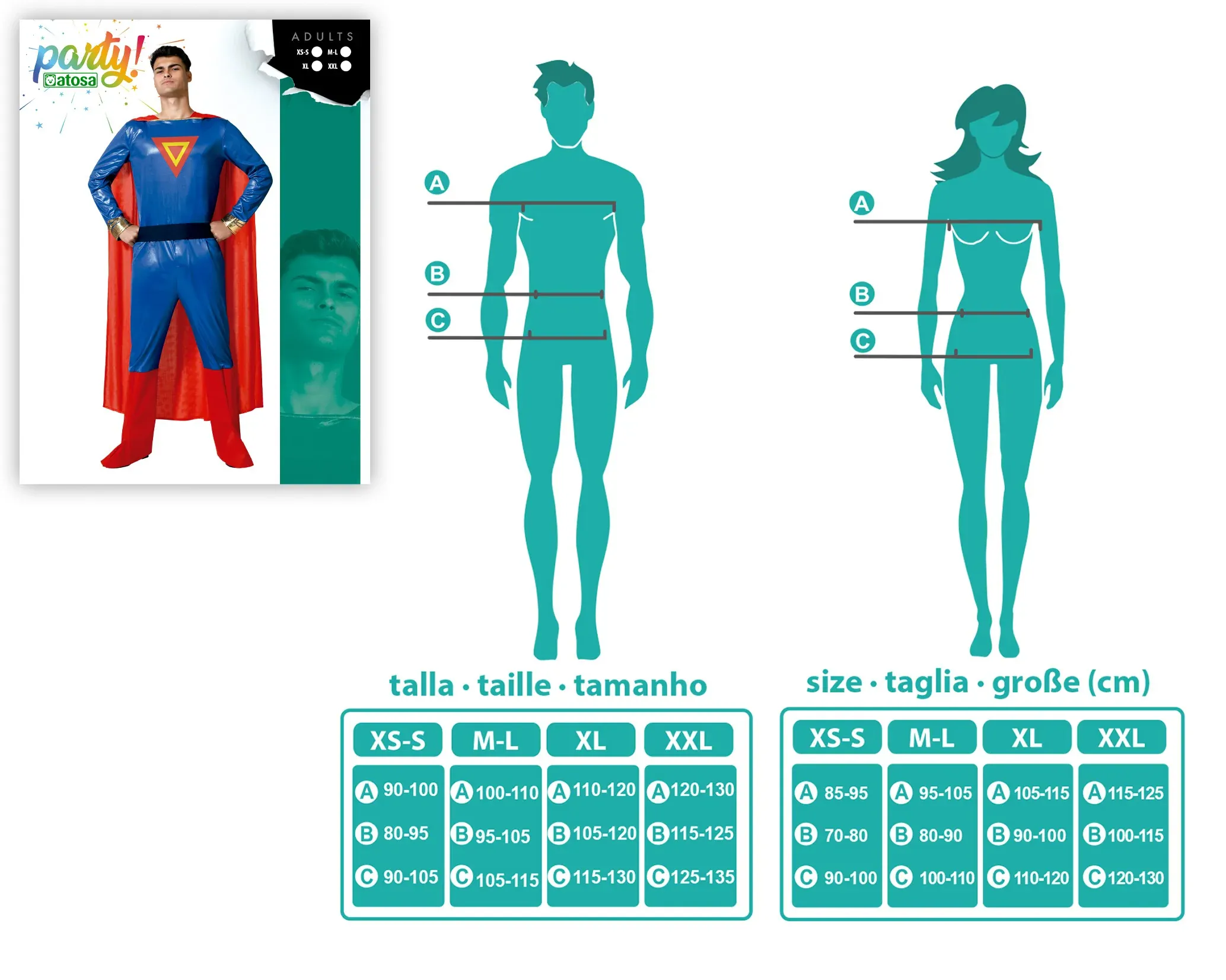- Disfraz héroe cómic hombre adulto ideal para fiestas de Carnaval. Contenido: 1 mono, 1 capa y 1 cinturón.