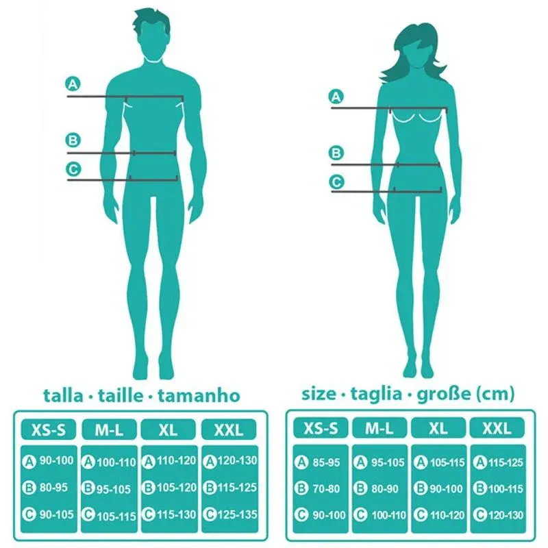 XXL: contorno de pecho: 120-130 cm de cintura: 115-125 cm de cadera: 125-135 cm