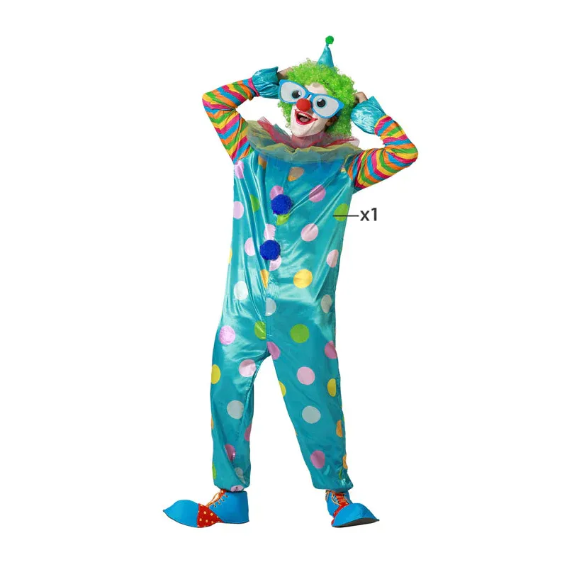 Disfraz payaso adulto unisex ideal para fiestas de Carnaval o cumpleaños. Contenido: 1 bata y 1 sombrero.