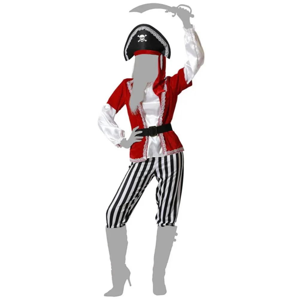 Disfraz pirata ideal para fiestas de Carnaval. Contenido: 1 camisa cosida, 1 cinturón, 1 pantalón y 1 sombrero.