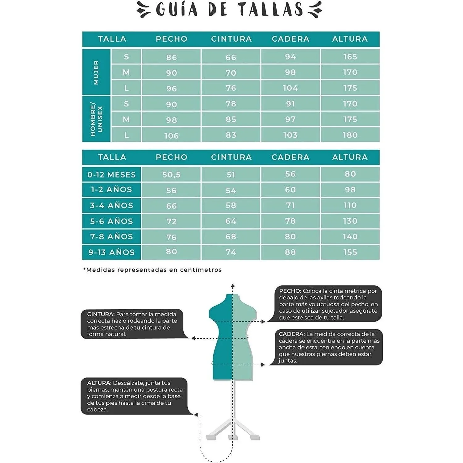 - Disfraz Mujer: S (pecho 86 cm, cintura: 66 cm, cadera: 94 cm), M (pecho 90 cm, cintura: 70 cm, cadera: 98 cm), L (pecho 96 cm, cintura: 76 cm, cadera: 104 cm). XL (pecho 110 cm, cintura: 97 cm, cadera: 116 cm)