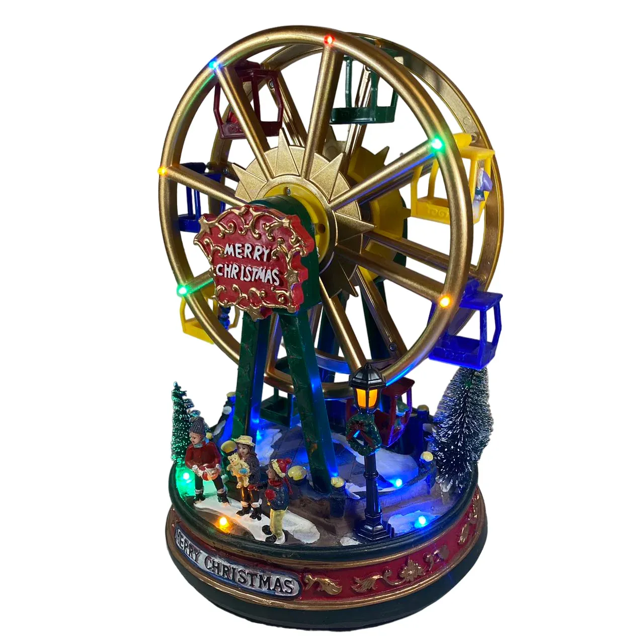 Escena Noria Con Luz 15 Led Música Navideña Movimiento ø20 x 28 cm cm para Decoracion de Navidad