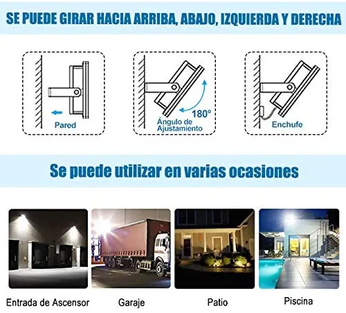 - IP65 IMPERMEABLE: hecho de carcasa de aluminio fundido a presión y vidrio templado, las luces de inundación pueden funcionar bien en lluvia, aguanieve, nieve. Apto para interiores y exteriores, se puede aplicar en jardines, muelles, estadios y otros lugares.