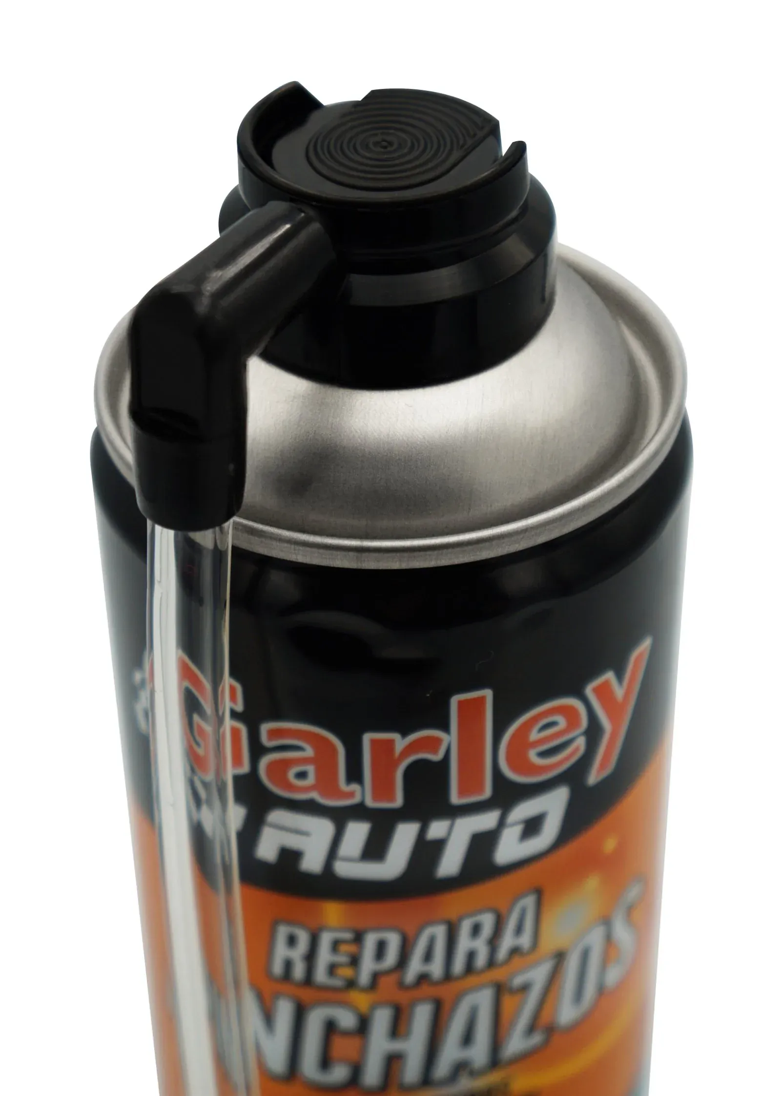 Repara Pinchazos . Repara e infla al instante. Ideal para emergencias. MODO DE EMPLEO. Extraer el objeto que ha provocado el pinchazo. Desinflar completamente el neumático. Agitar el envase, enroscar el tubo en la válvula de neumático. Con el envase en posición vertical, presionar el pulsador hasta que el neumático hasta que esté hinchado. Utilizar la bicicleta para que el producto se reparta por el neumático tan pronto como sea posible. Mantener fuera del alcance de los niños. Mantener alejado del calor, de superficies calientes, de chispas, de llamas abiertas y de cualquier otra fuente de ignición. No pulverizar sobre llama abierta u otra fuente de ignición. No exponer a temperaturas superiores a 50°C/122°F.