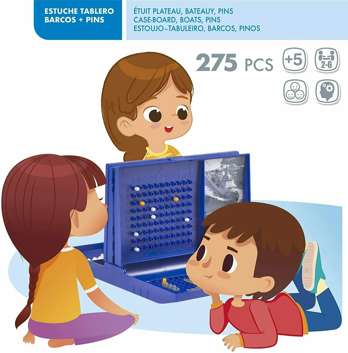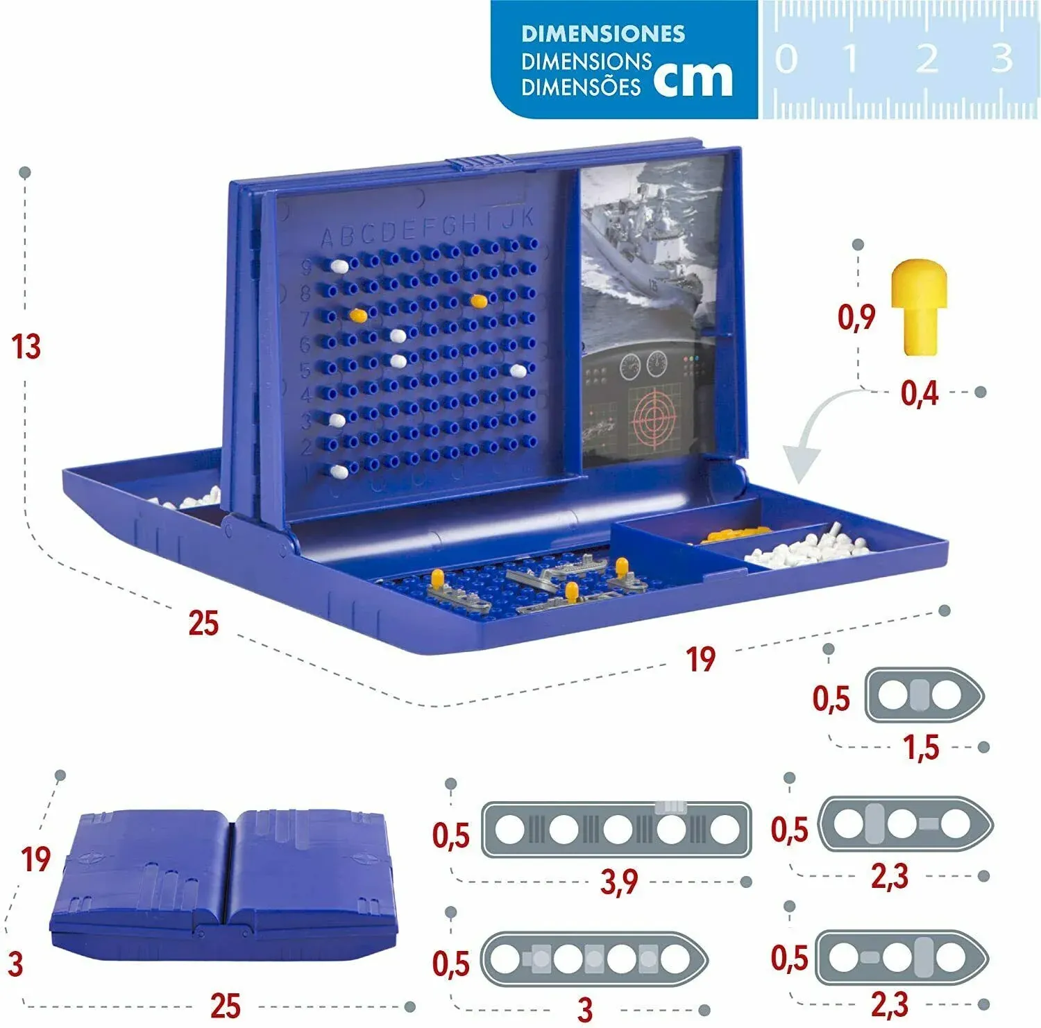 - Incluye 275 piezas: 1 tablero, 176 punteros blancos, 88 punteros naranja y 10 barcos (5 para cada jugador) de 1, 2, 3, 4 y 5 agujeros