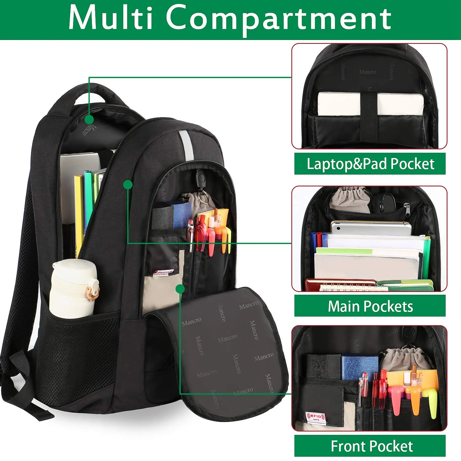 - MULTI-COMPARTIMIENTO Y BOLSILLOS: la mochila para computadora portátil de la universidad posee 3 bolsillos principales y 10 bolsillos interiores y 2 bolsillos laterales de malla, espacio suficiente para libros, computadoras, cuadernos, botellas de agua y otros equipos tecnológicos. Mochila ligera / mochila de fin de semana, mochila profesional para estudiantes grandes, mochila escolar universitaria para hombres / mujeres, puede usarla en cualquier lugar para campus, viajes, viajes de fin de semana, necesidades diarias, accesorios de tecnología electrónica. GARANTÍA DE VIDA Servicio al cliente profesional las 24 horas.