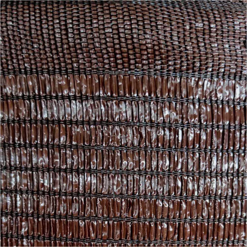 La malla de ocultación está compuesta de Poliamida de alta densidad, material que le otorga una alta resistencia y durabilidad frente a los agentes meteorológicos y los rayos UVA. La malla está compuesta de rafia entrelazada, con 80 g/m2 de material.