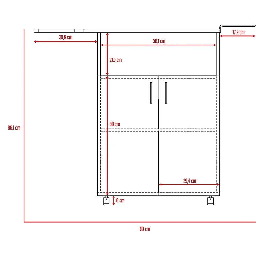 Mueble de Planchado Urano Blanco con compartimento para almacenar elementos de aseo, amplia superficie para planchar, forro acolchado ajustable, y soporte en rejilla para plancha.