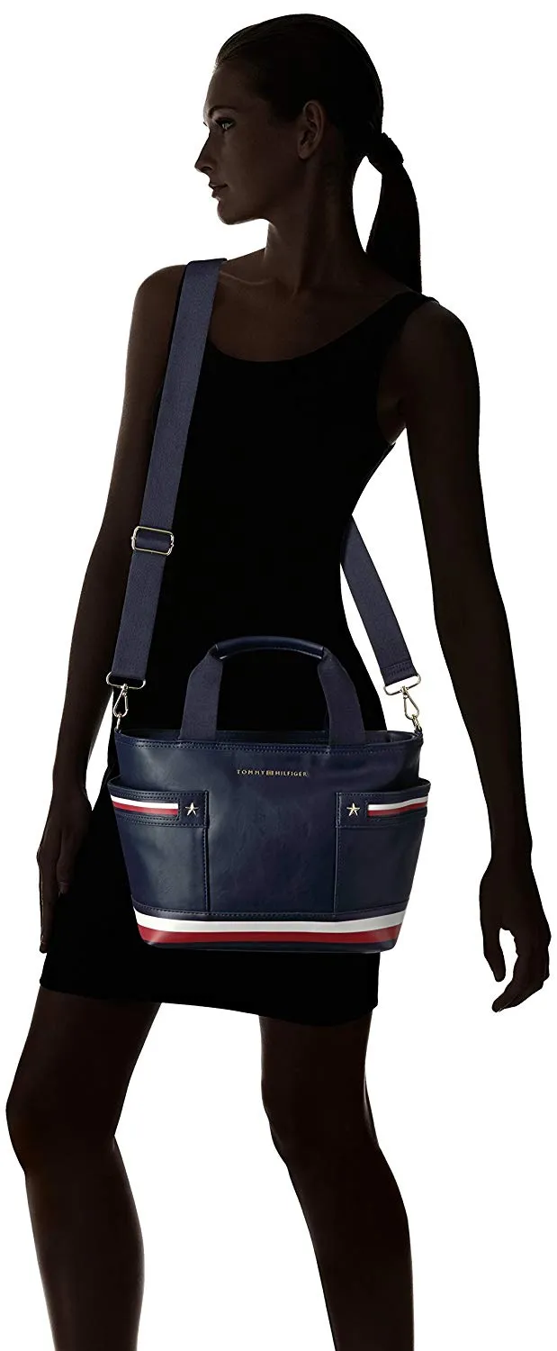 - Bolsos de asa superior para mujeres con la banda de la bandera de la firma de Tommy Hilfiger y una bandolera convertible.