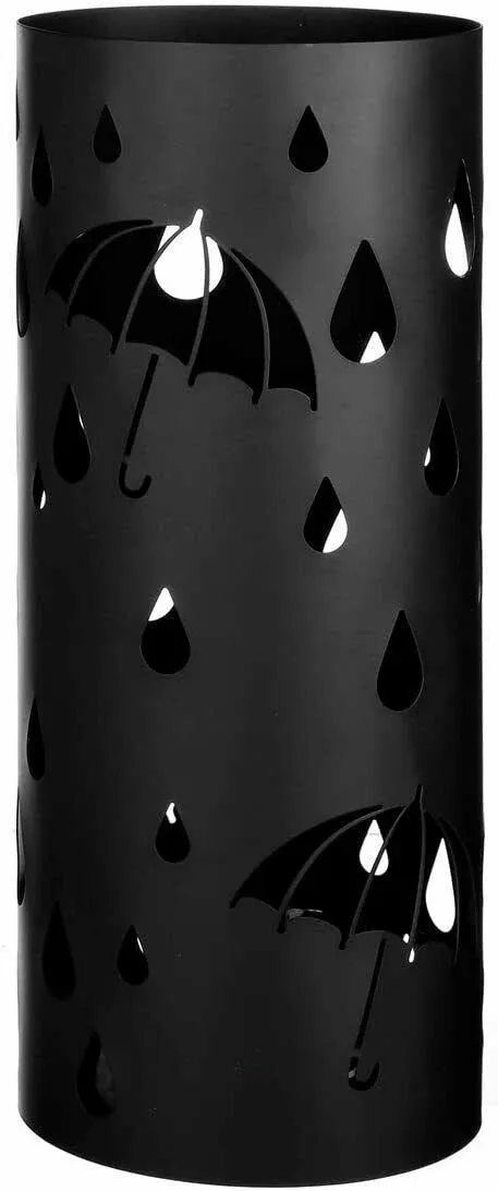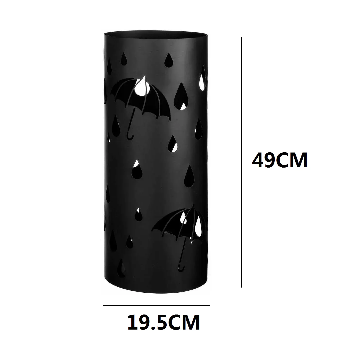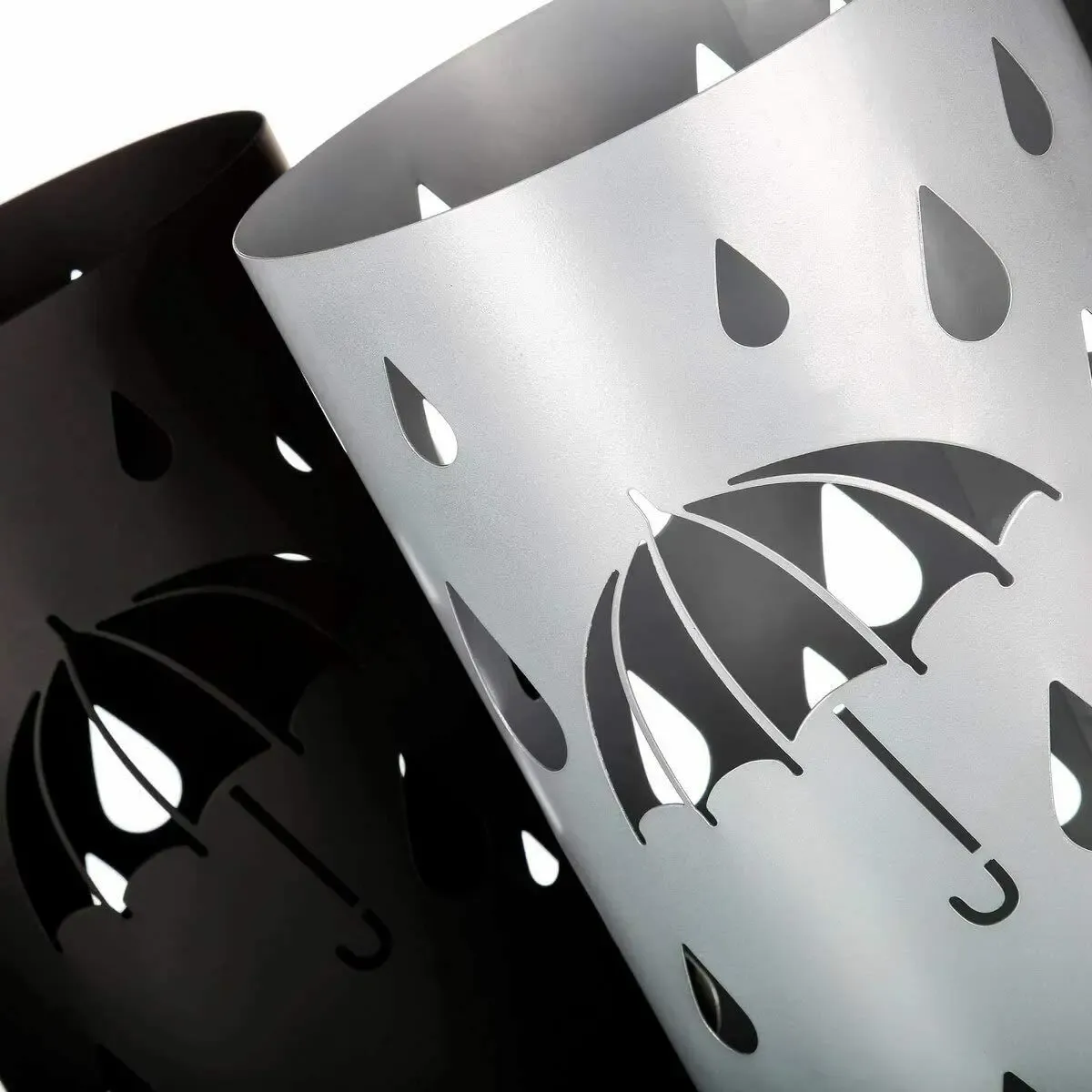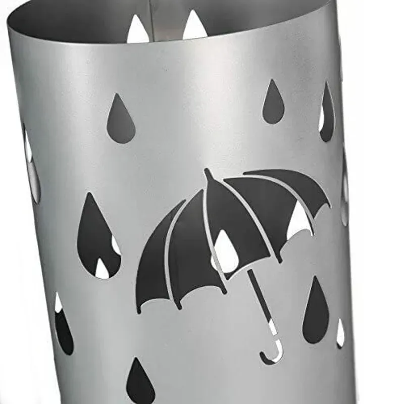 - El paragüero metálico está fabricado con lámina de hierro tallada, con una innovadora técnica láser, siguiendo un patrón con calado de gotas de lluvia y paraguas.