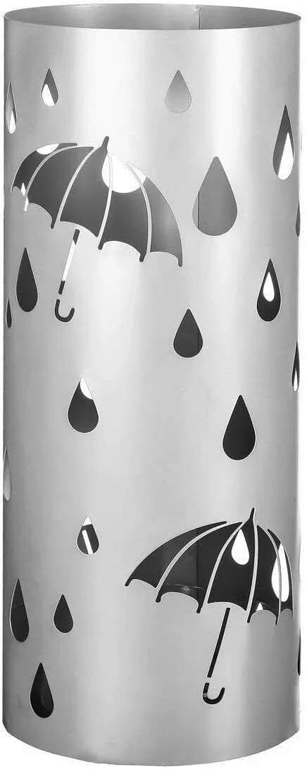 Paragüero contemporáneo plateado de metal redondo de gotas de lluvia de 19.5×49 cm