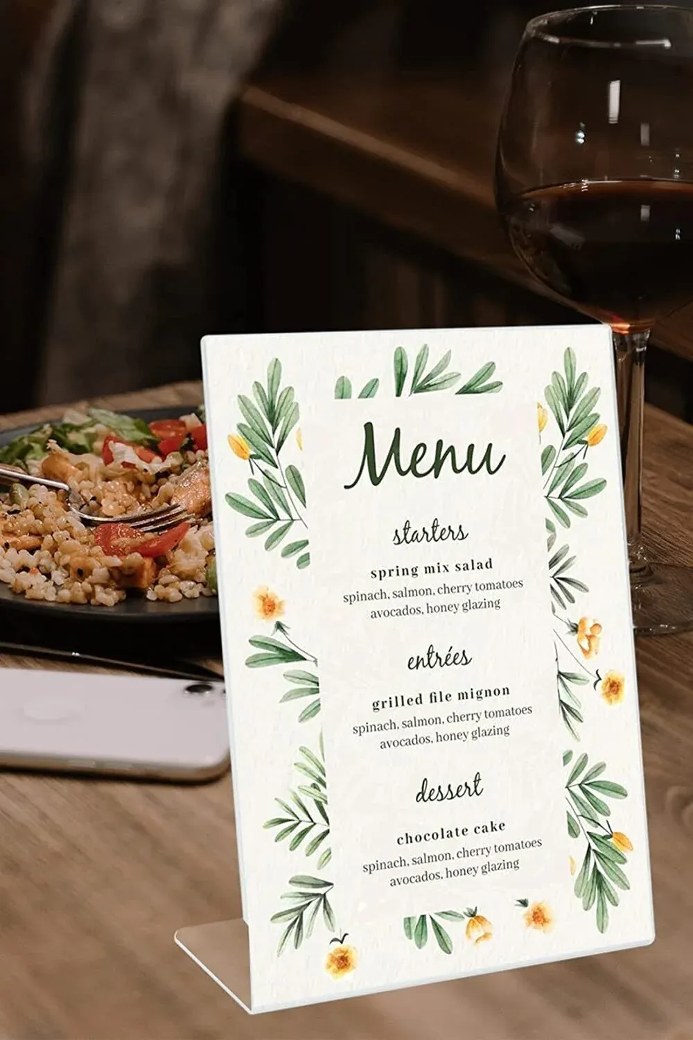 🖼️ El uso de parta cartel acrilico presenta una imagen profesional de cara a los invitados y clientes, para las ocasiones como; menú, anuncios, fotos, ofertas, eventos de bautizos, comunión, bodas y folletos. Se puede colocar en varios entornos : hogar, oficina, hotel, escuela, restaurante, bar, exposición, feria, feria, otros eventos, etc.