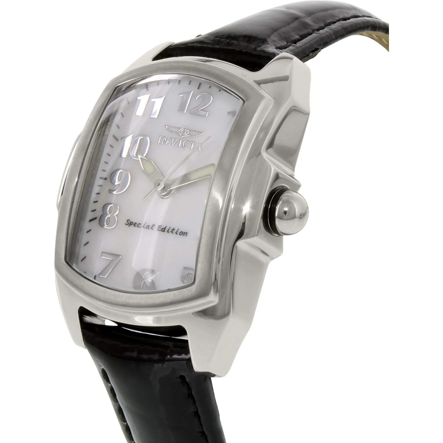 Con un brillo exquisito en tonos plateados, el juego de relojes intercambiables Baby Lupah de Invicta para mujeres llamará la atención con su esfera de nácar adornada y su bisel de acero inoxidable. Protegida por un cristal de fusión de llamas, la esfera de la esfera se complementa con elegancia con dos manos de espada de tono plateado y un atractivo conjunto de marcadores de hora en números arábigos. La esfera está bordeada con marcadores de minutos rayados. El reloj luce una banda de cuero gris pizarra oscuro con cierre de hebilla y viene con correas de cuero marrón oscuro, rosa, espuma de mar y blanco adicionales para personalizar. Resistente al agua hasta 330 pies (100 m), este reloj también cuenta con la confiabilidad del movimiento de cuarzo suizo. Para una presentación elegante, se incluye una exclusiva caja de regalo Invicta.