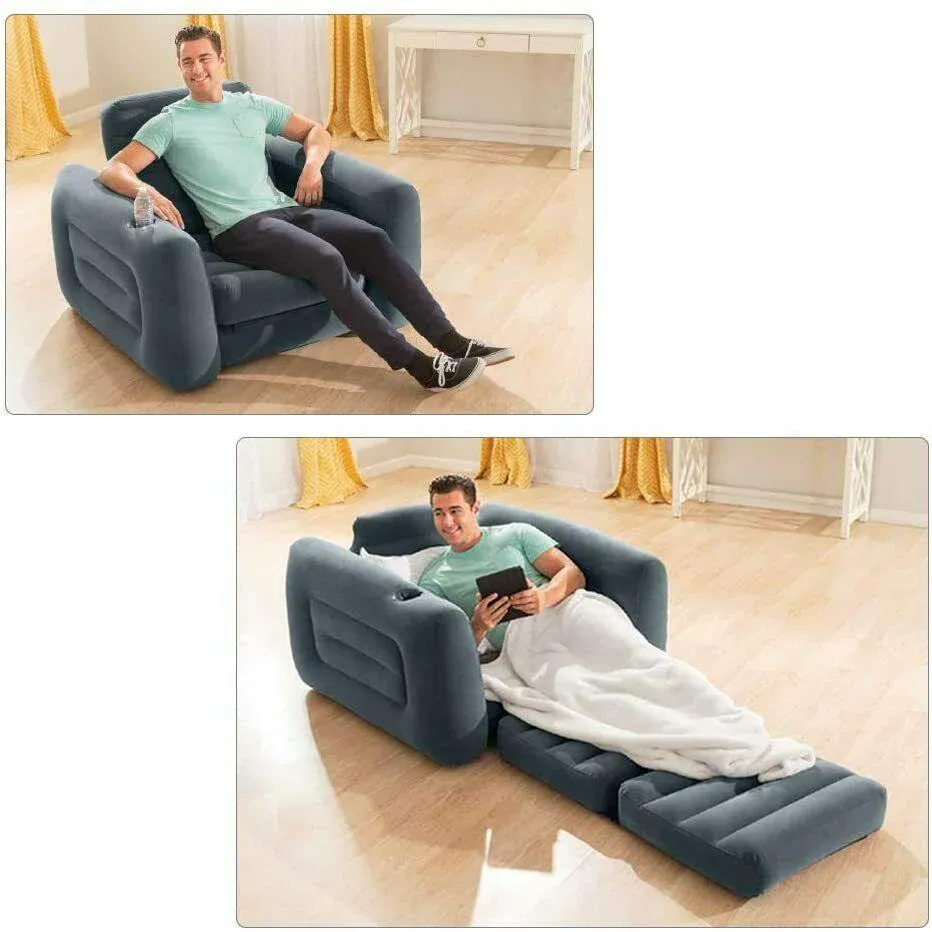 - Asiento hinchable individual Intex convertible a cama, medidas de la cama: 117 x 224 x 66 cm, color gris carbón