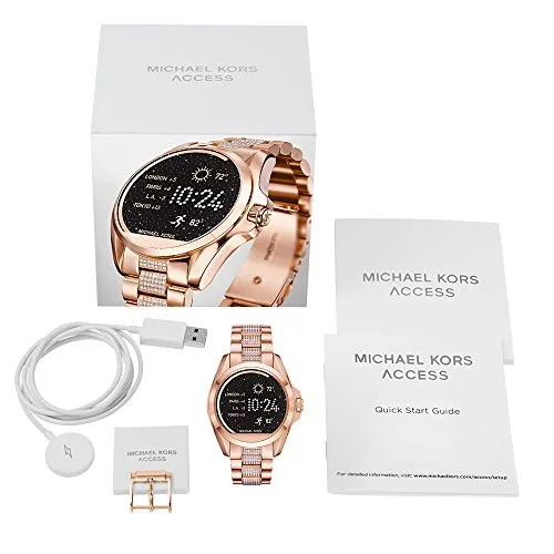 La tecnología se combina con el estilo jet set que conoces y amas en este reloj con pantalla táctil Michael Kors Bradshaw. Desarrollado por Android Wear, este reloj inteligente se conecta con tus aplicaciones favoritas y es compatible con dispositivos Apple y Android. Personalice completamente su reloj seleccionando o personalizando la esfera del reloj de su elección y utilizando la hebilla extra complementaria provista para cambiar las correas para que coincida con su actividad o apariencia.