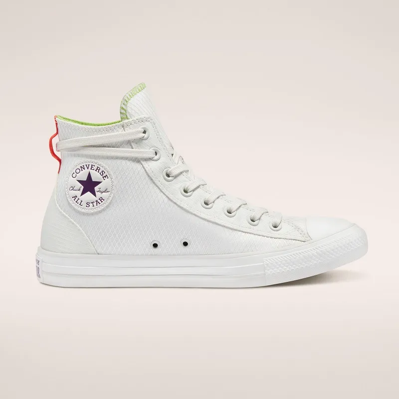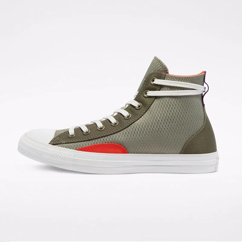 Las icónicas Chuck Taylor All Star ahora se adaptan al aire libre. Esta edición cambia la lona por el tejido Ripstop ultraduradero con tonos tierra neutros. La tira del talón en red sujeta los cordones envolventes. Sigue con los cordones planos convencionales o cámbialos por unos cordones de senderismo para conseguir un look más práctico.