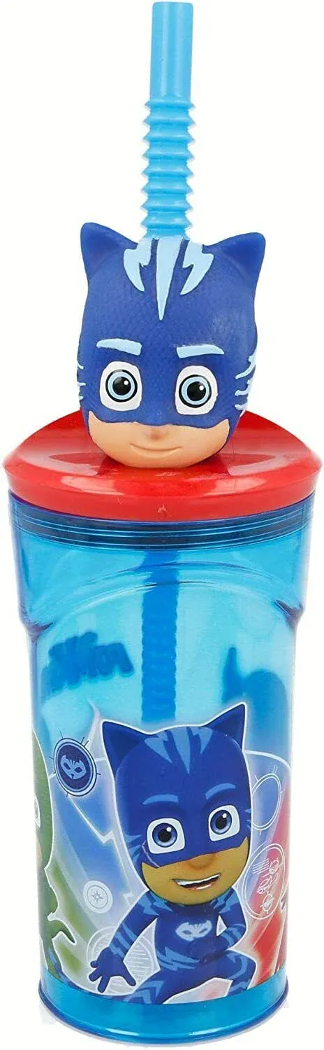 Original y divertido vaso con pajita incorporada, decorado con una figurita en 3D de algunos de los personajes favoritos de los niños.