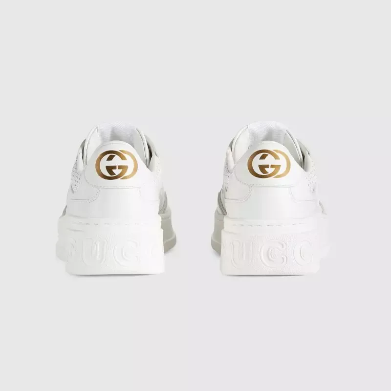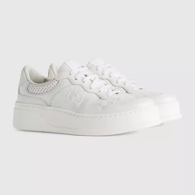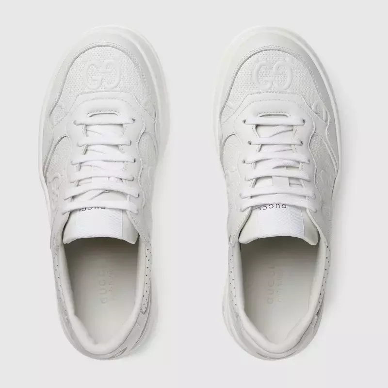 Zapatilla Con GG En Relieve La silueta gruesa aporta un toque retro y jovial a estas zapatillas. Las colecciones de Gucci no pierden de vista otras épocas, inspirándose en el día a día, pero introduciendo el pasado en el presente. El motivo de monograma, confeccionado en piel con GG en relieve, proporciona un toque especial al logo.