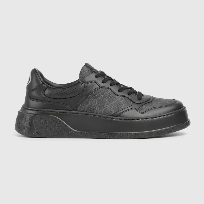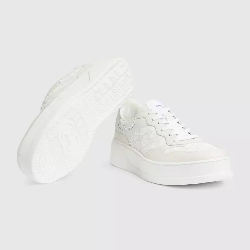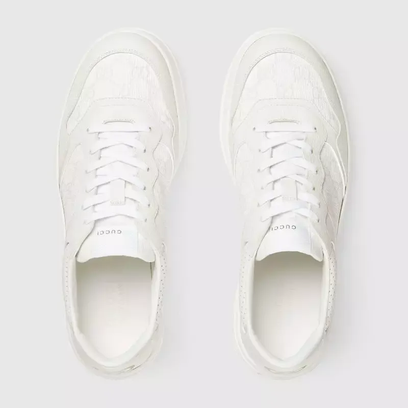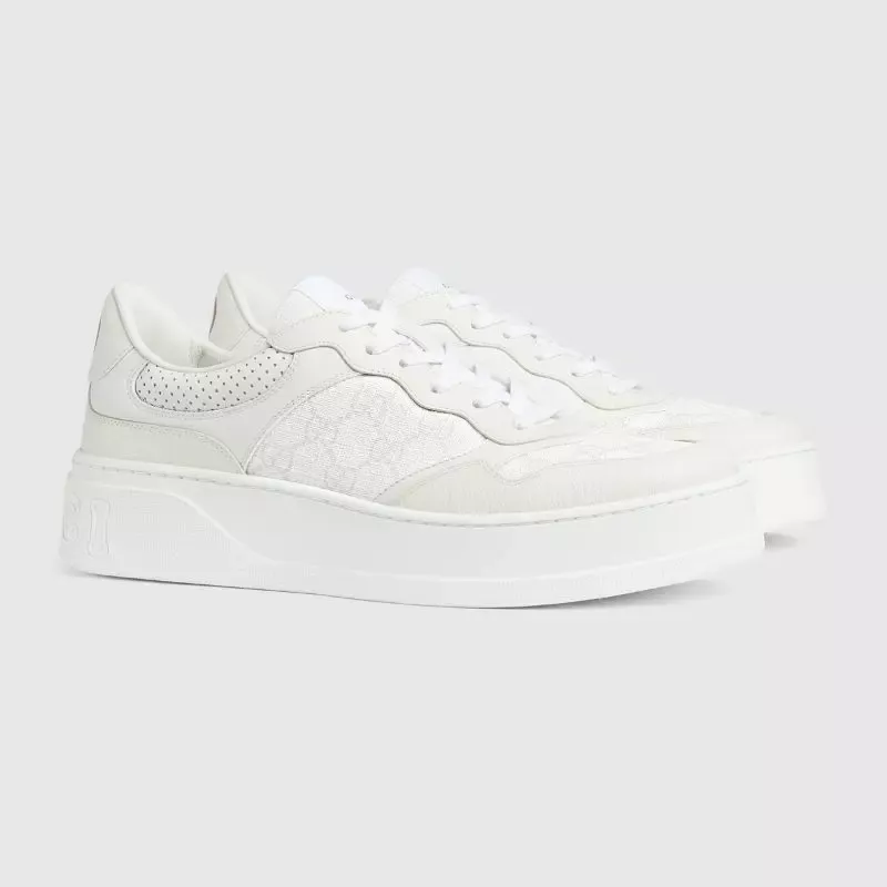 Zapatilla con GG Para Hombre La silueta gruesa aporta un toque retro y jovial a estas zapatillas. Las colecciones de Gucci no pierden de vista otras épocas, inspirándose en el día a día, pero introduciendo el pasado en el presente. El motivo de monograma sobre lona GG Supreme en blanco y gris aporta un aire exclusivo al diseño.