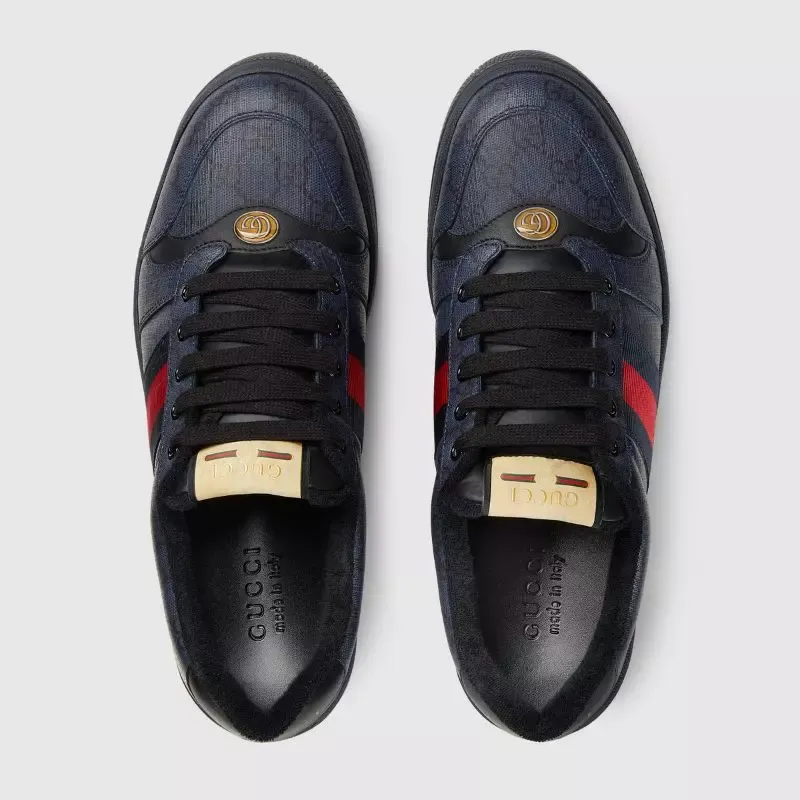 Zapatilla Screener Para Hombre Con claras reminiscencias de las zapatillas clásicas de los años 70, las zapatillas Screener, así denominadas por el movimiento deportivo de defensa, cuentan con la tribanda Web en el lateral y el logo vintage de Gucci.