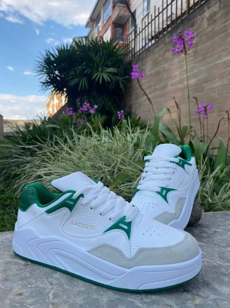 • Suela de goma, Forros textiles, Logotipo de Lacoste moldeado en el cuarto.