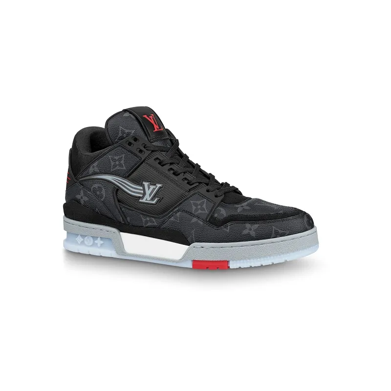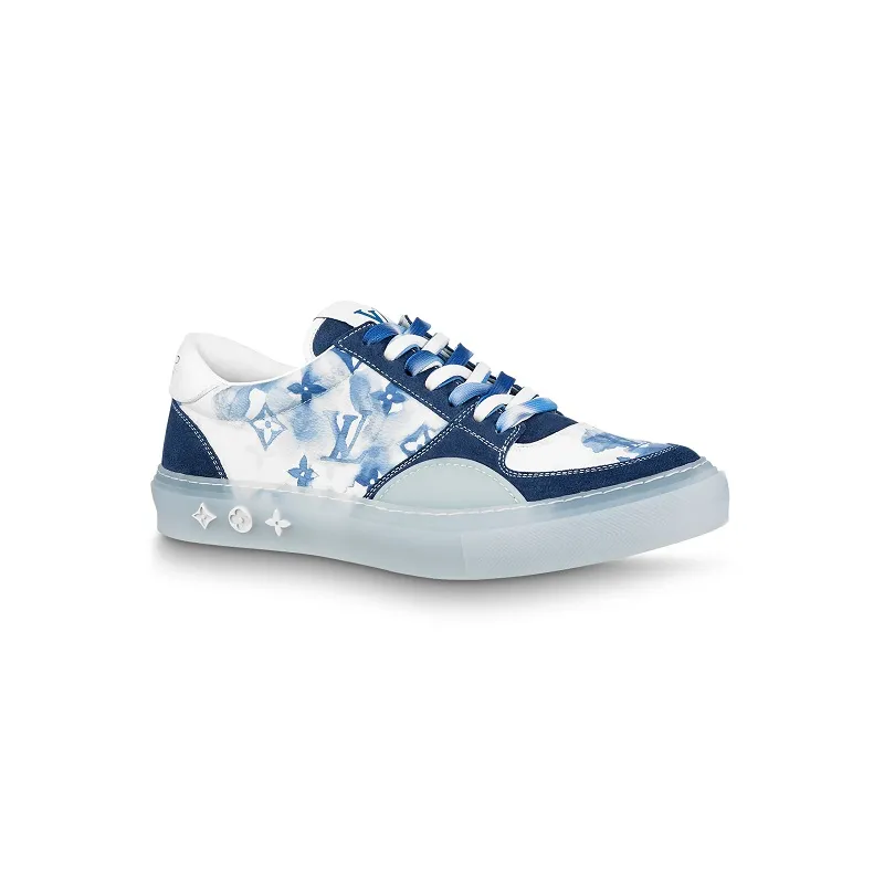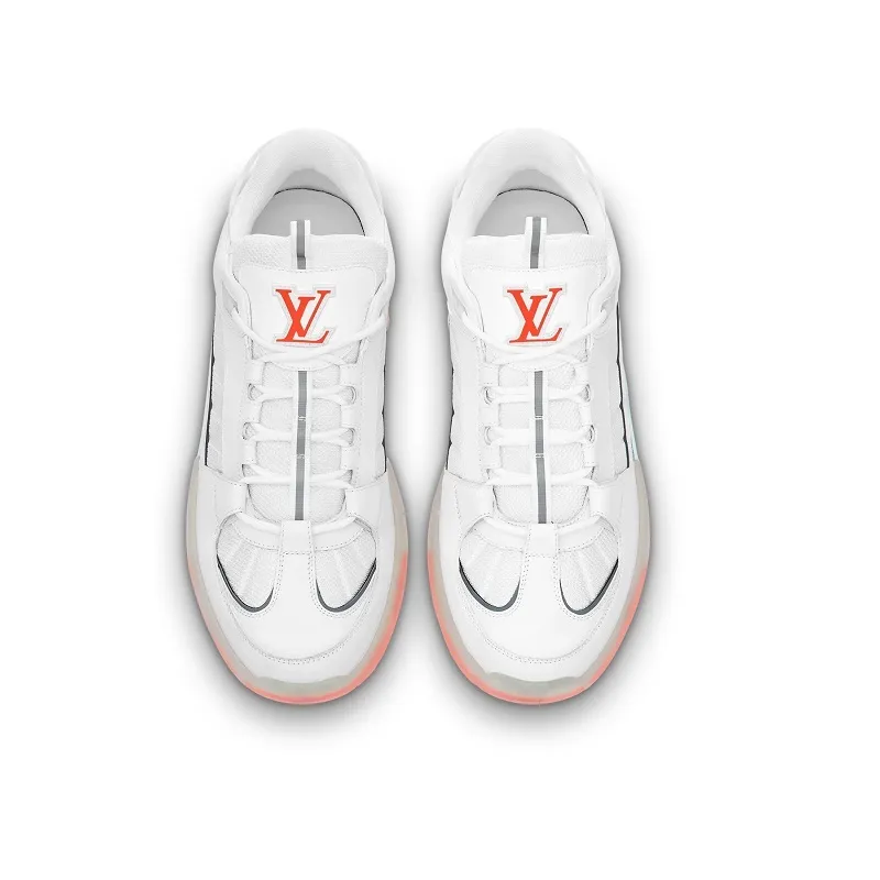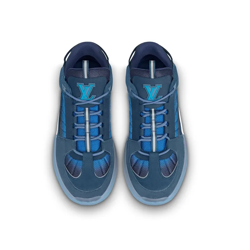La zapatilla deportiva A View es un diseño de Virgil Abloh, director artístico de Louis Vuitton, inspirado en el calzado de skate. El empeine está confeccionado en malla técnica y ante de piel de becerro, mientras que la suela es de goma bicolor transparente. Se completa con el logotipo LV Initials en la lengüeta y el distintivo Louis Vuitton manuscrito en el lateral.